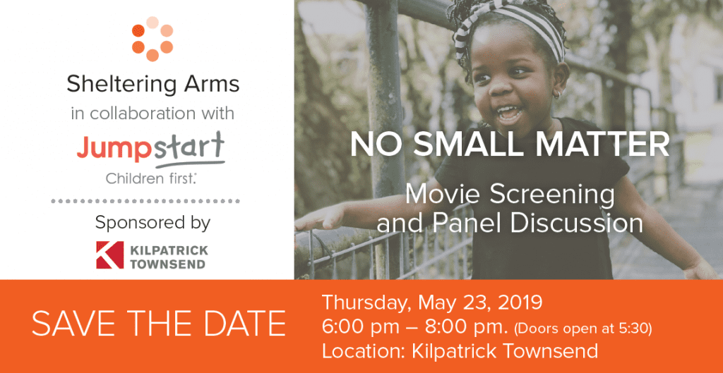 Sheltering Arms, in partnership with JumpStart, is hosting a screening of the documentary film “No Small Matter,” followed by a thoughtful discussion around early childhood education and how communities can work together to drive it to the top of the political agenda. Thursday, May 23, 2019 5:30 pm Pre-Event Reception and Networking 6:00 – 7:15 […]
